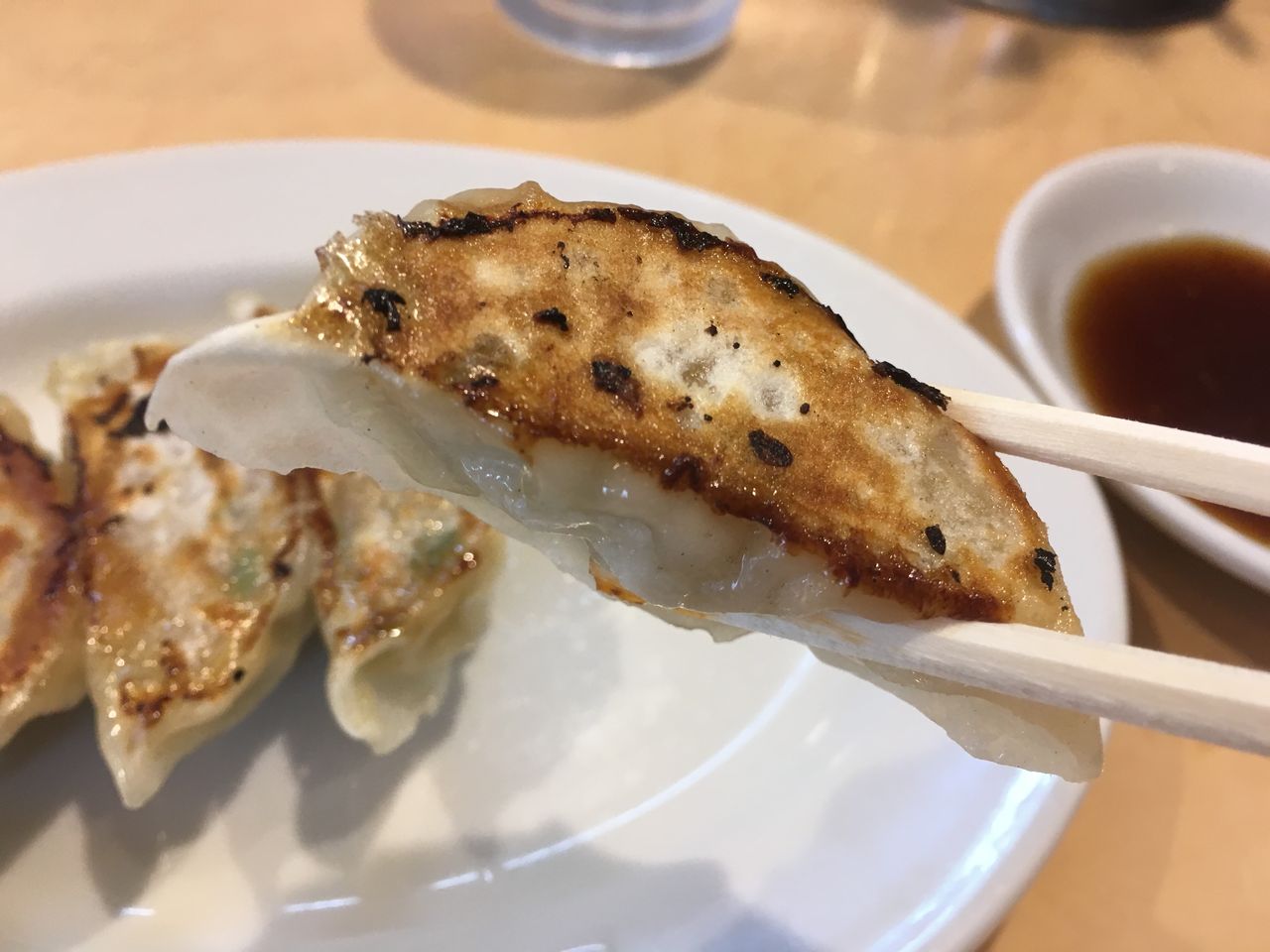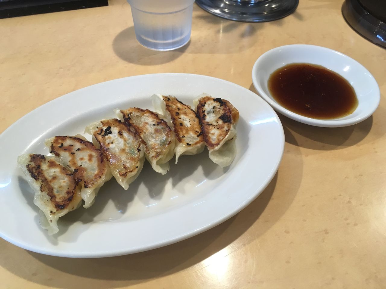 まずは、ラーメンだけでは足りないだろうとついつい頼んでしまった焼き餃子(6個250円)が到着!特製みそダレの用意もあるのだが、餃子は酢醤油派故にパス。